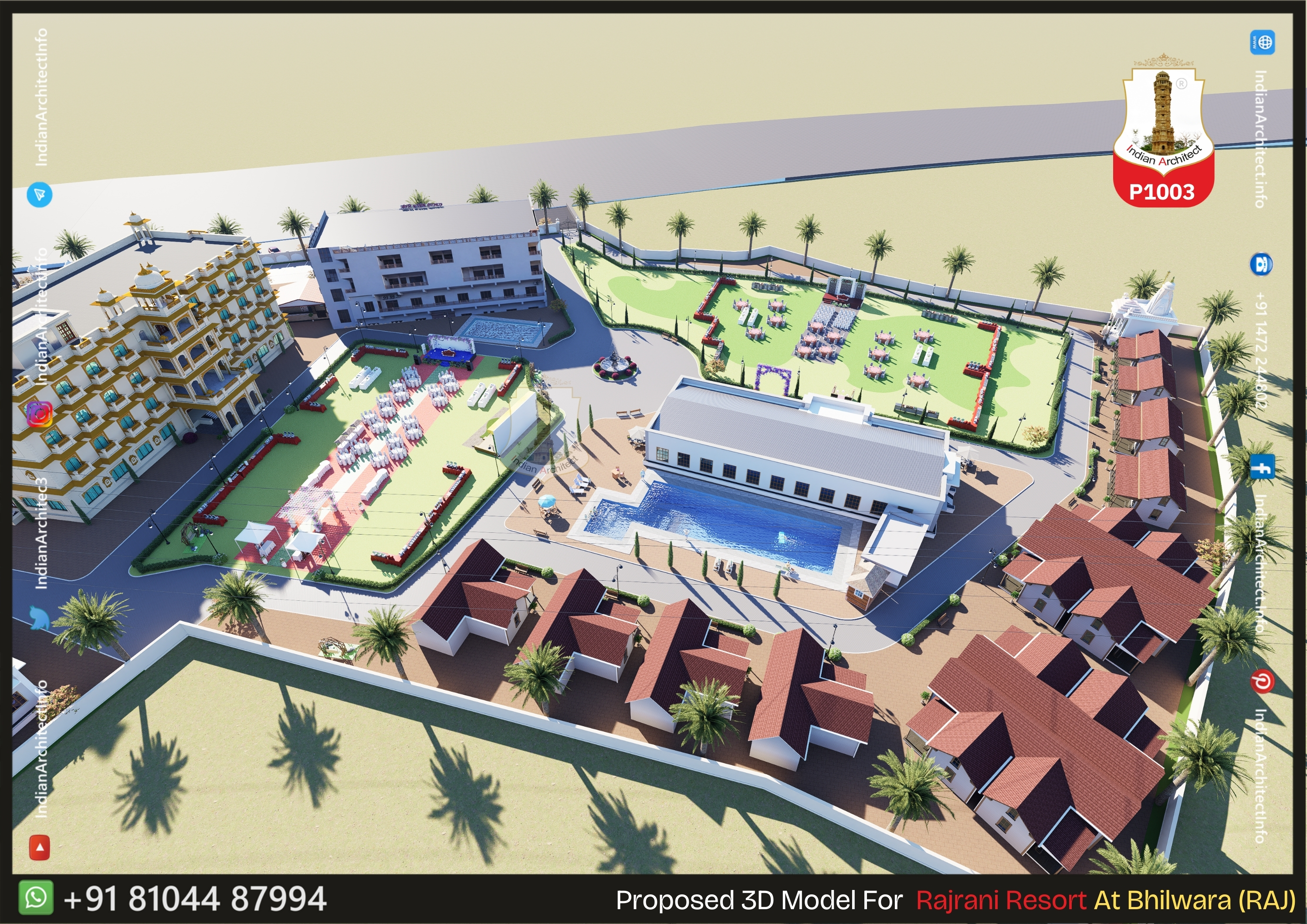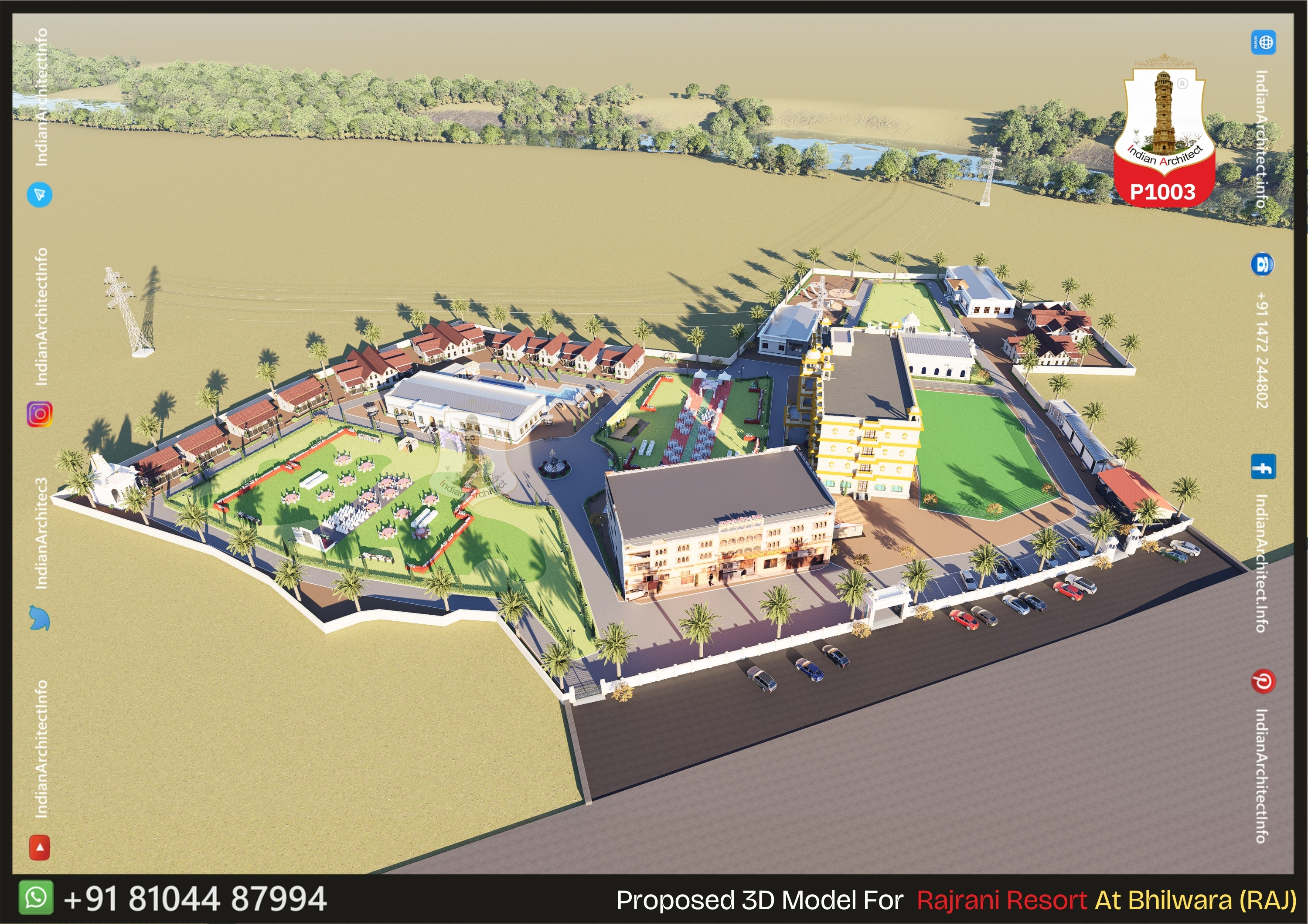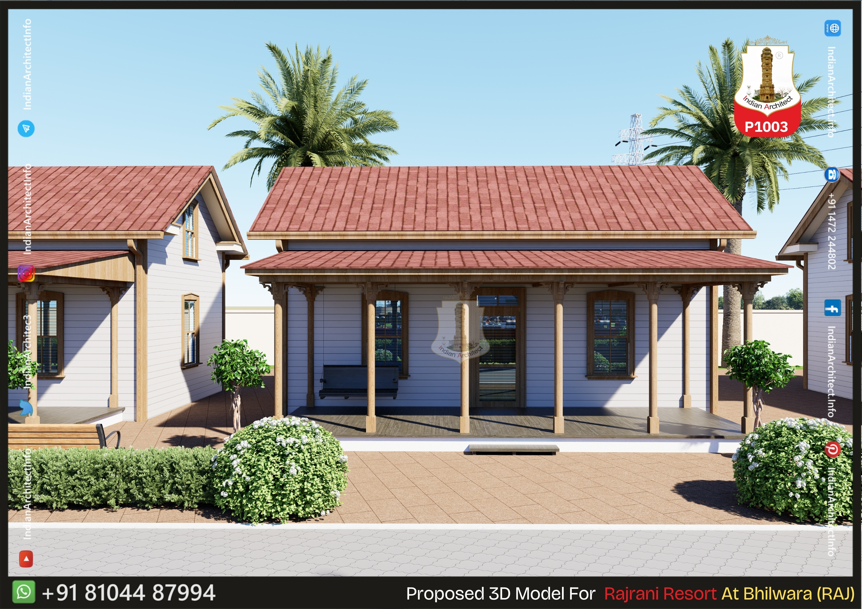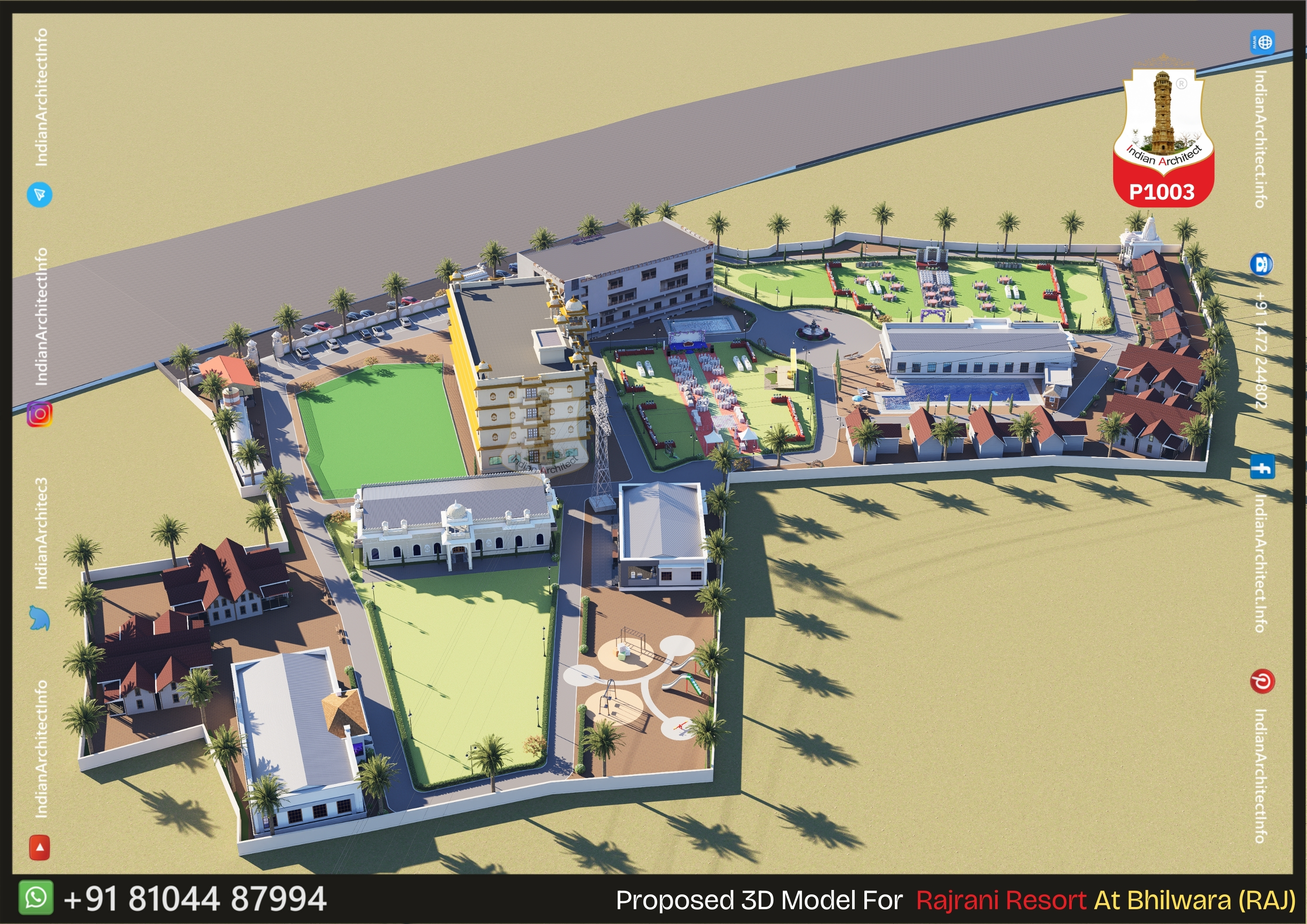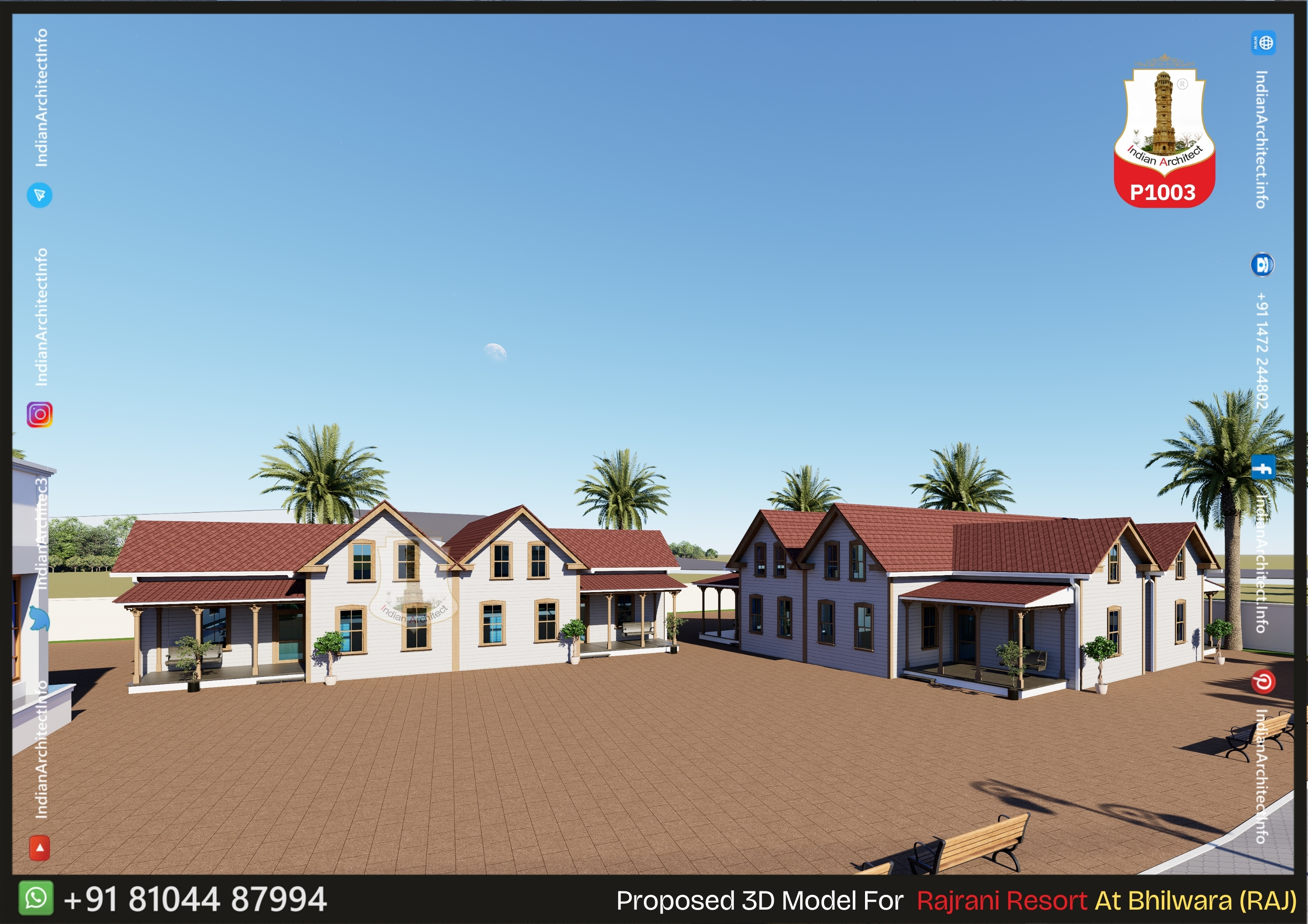Chhatri Elements: Decorative Chhatris (domed pavilions) are placed on the rooftop and corners, which are iconic symbols of Indian heritage architecture.