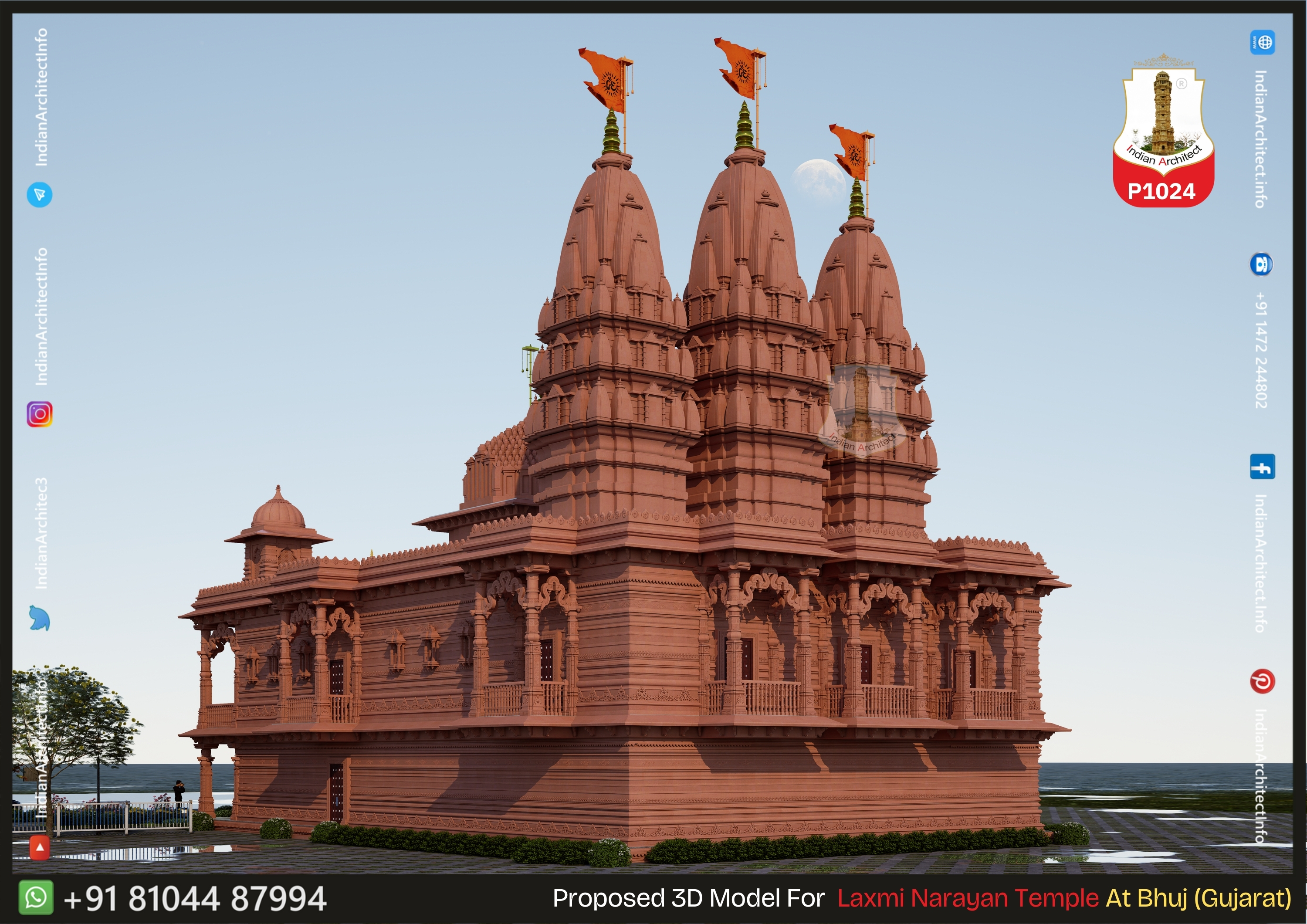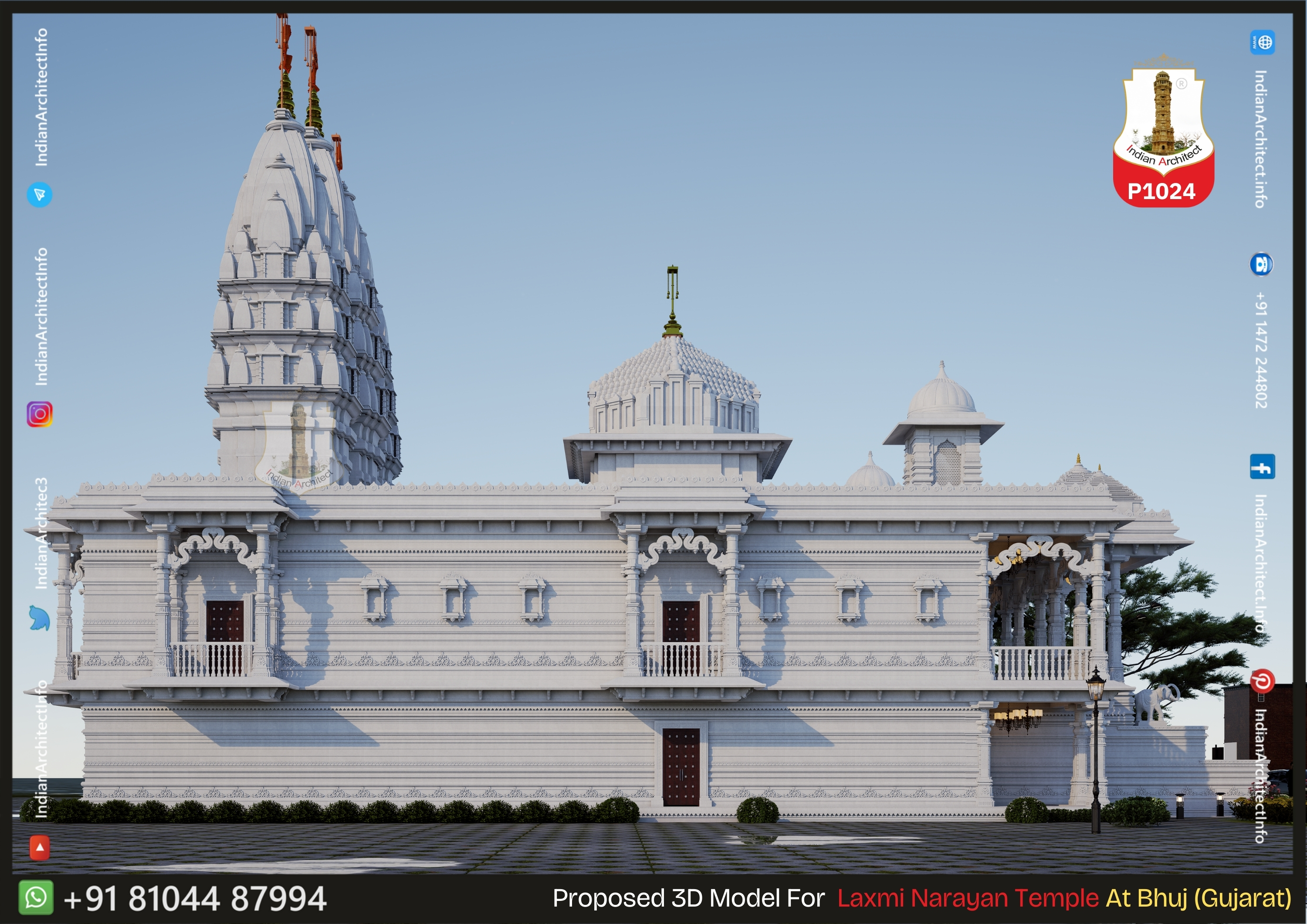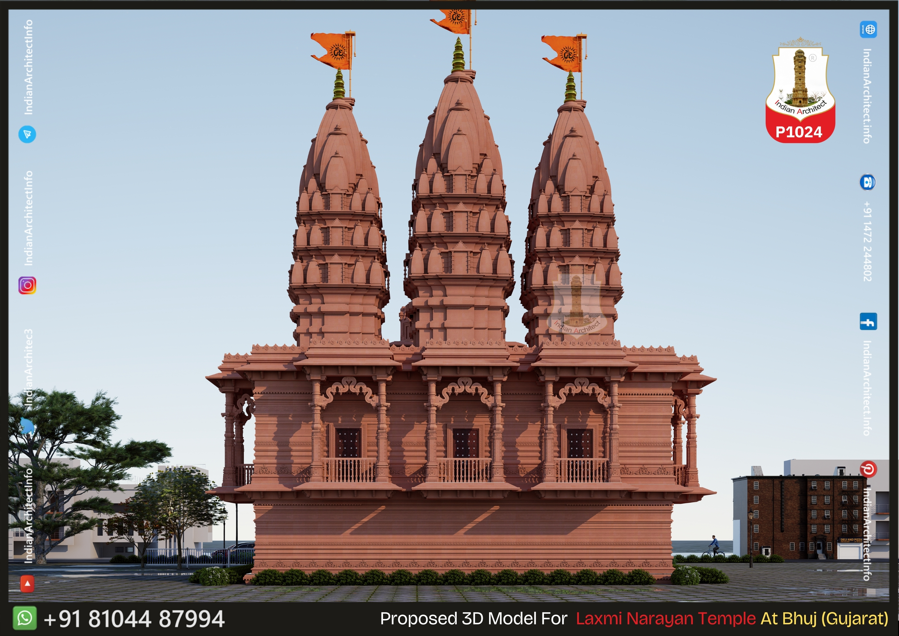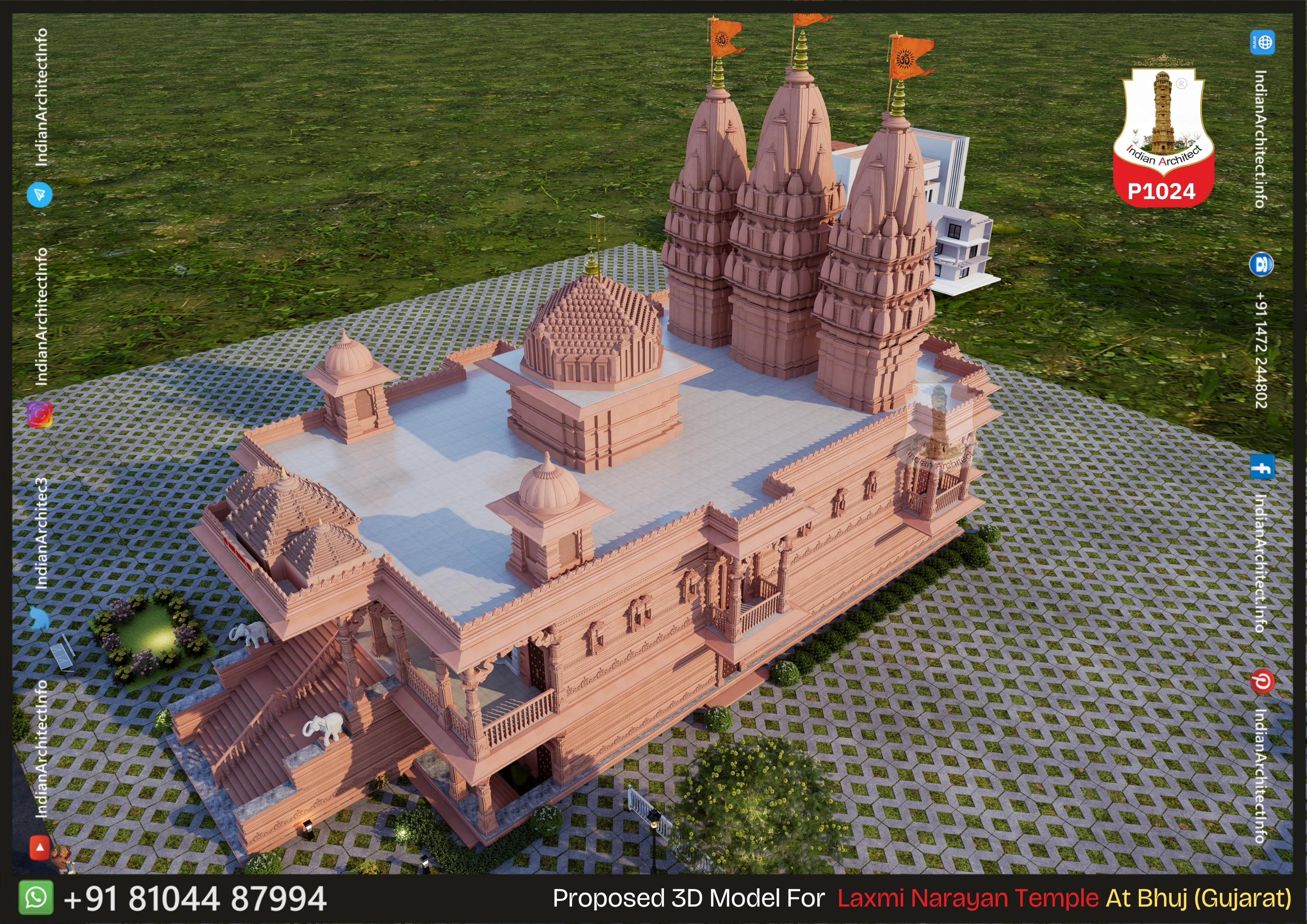 Material & Texture: The exterior showcases a Pink Sandstone finish, giving it a soft, regal appearance reminiscent of the famous temples in Rajasthan and Gujarat.