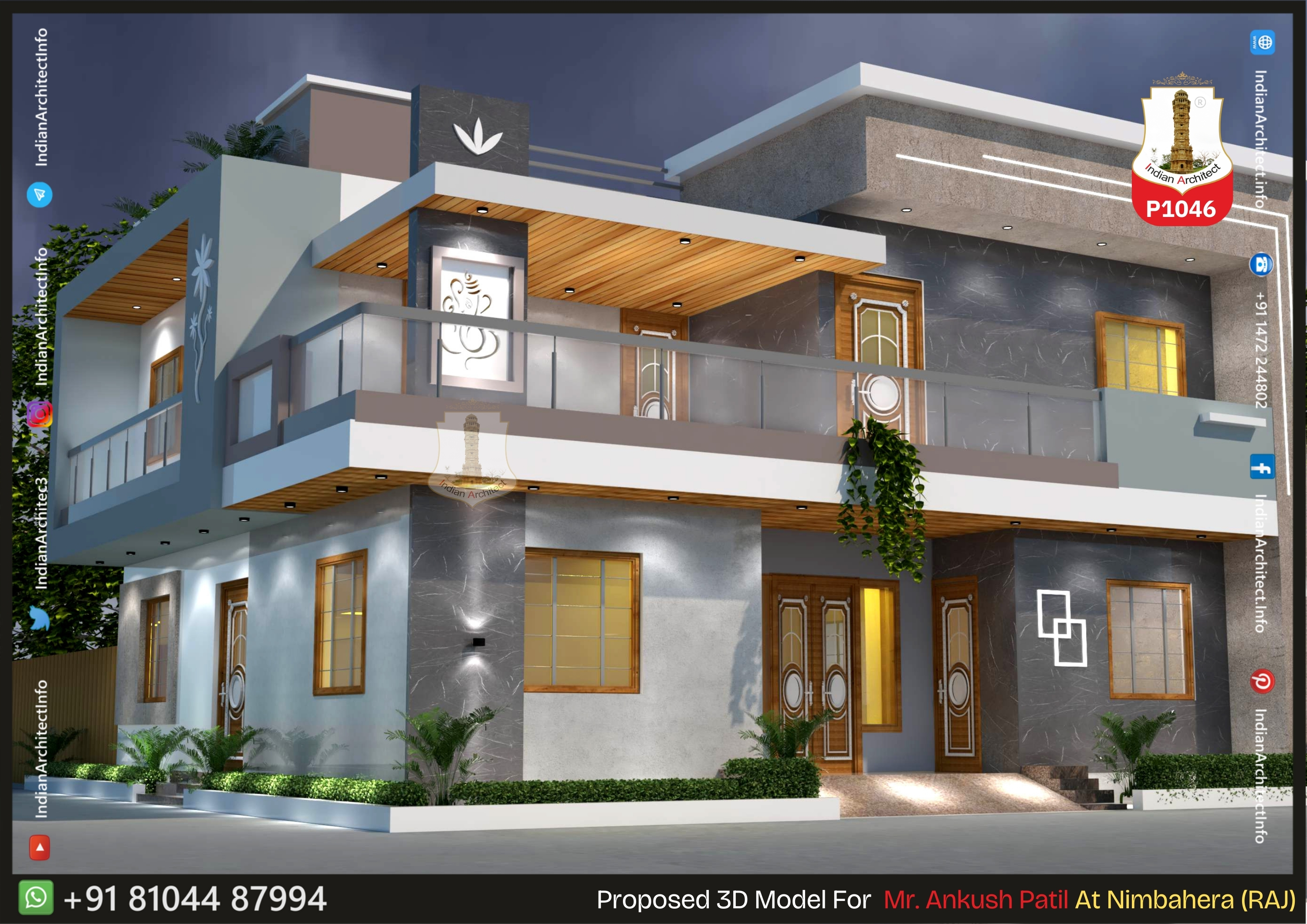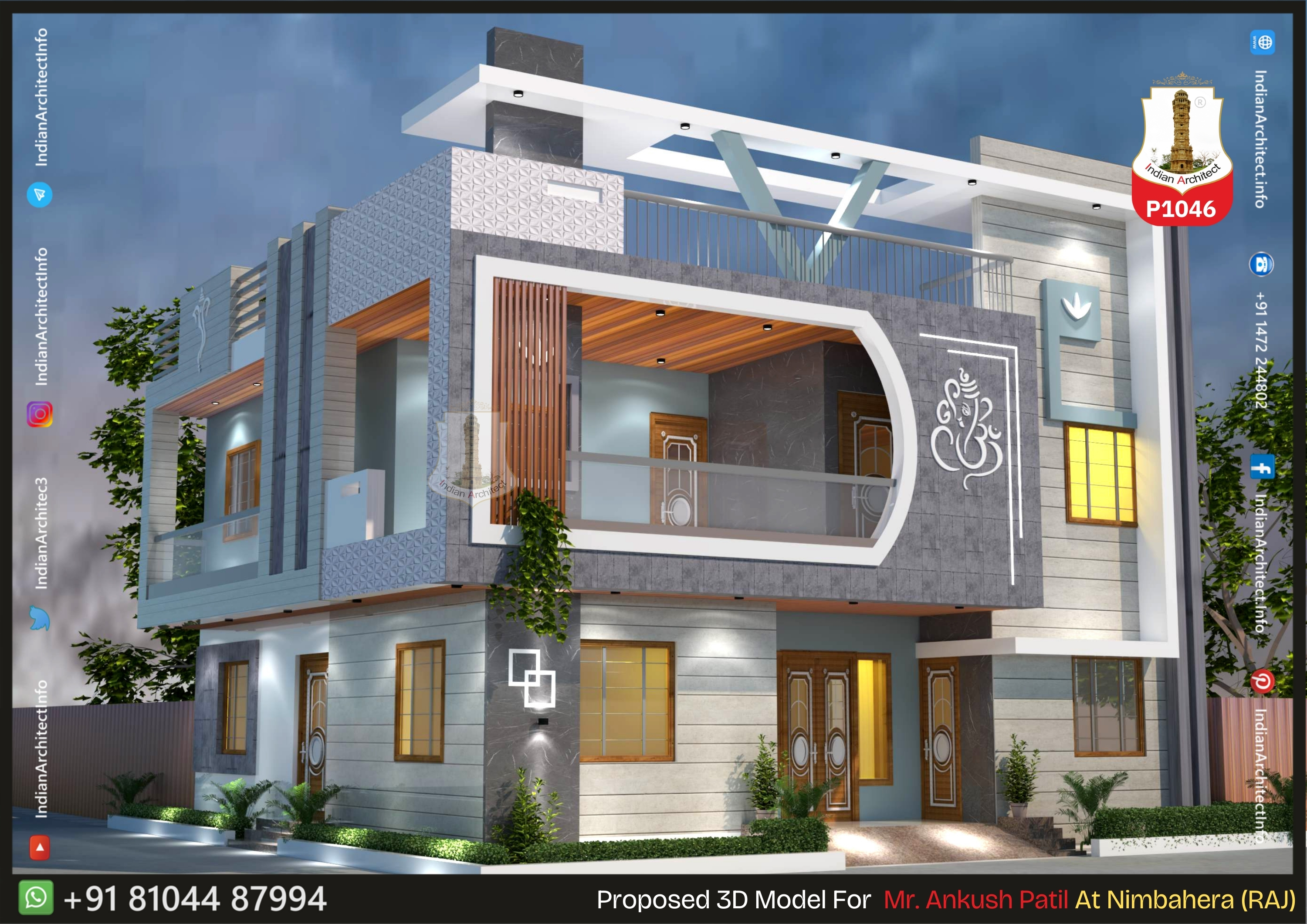 Backlit Spiritual Art: A prominent feature is the glowing Lord Ganesha panel on the first floor, adding a traditional and peaceful touch.