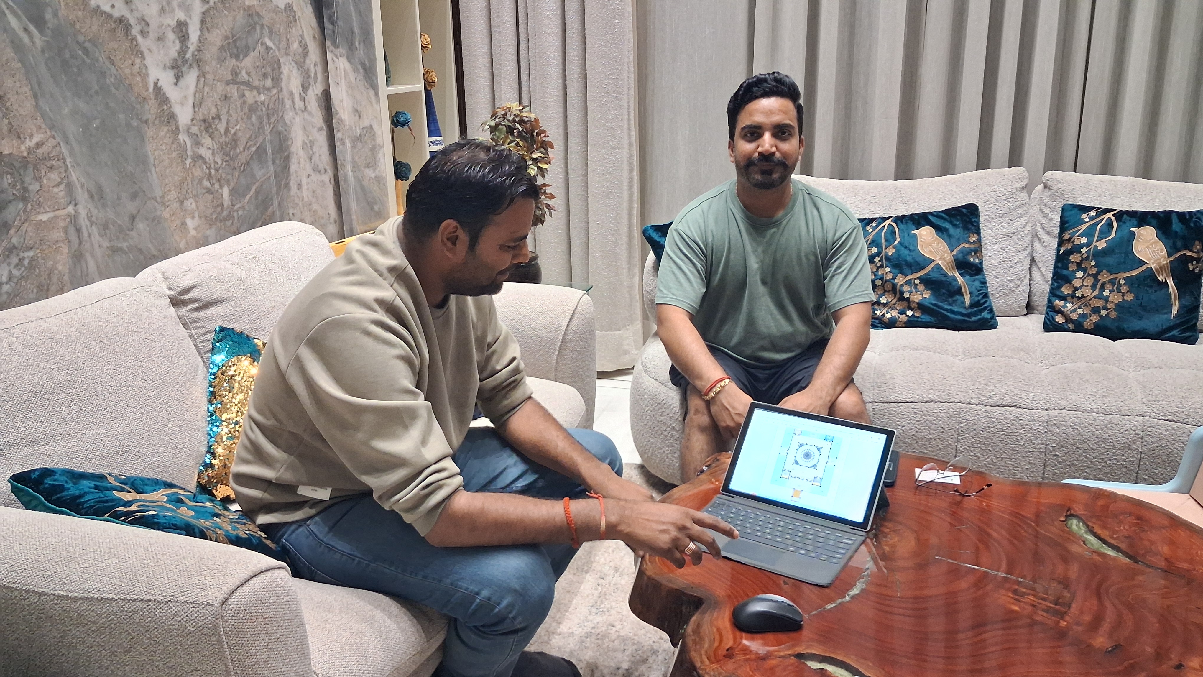 • Ornate Arches: The design utilizes Cusped Arches supported by slender, carved pillars, reflecting a fusion of Rajputana and classical temple elements.
