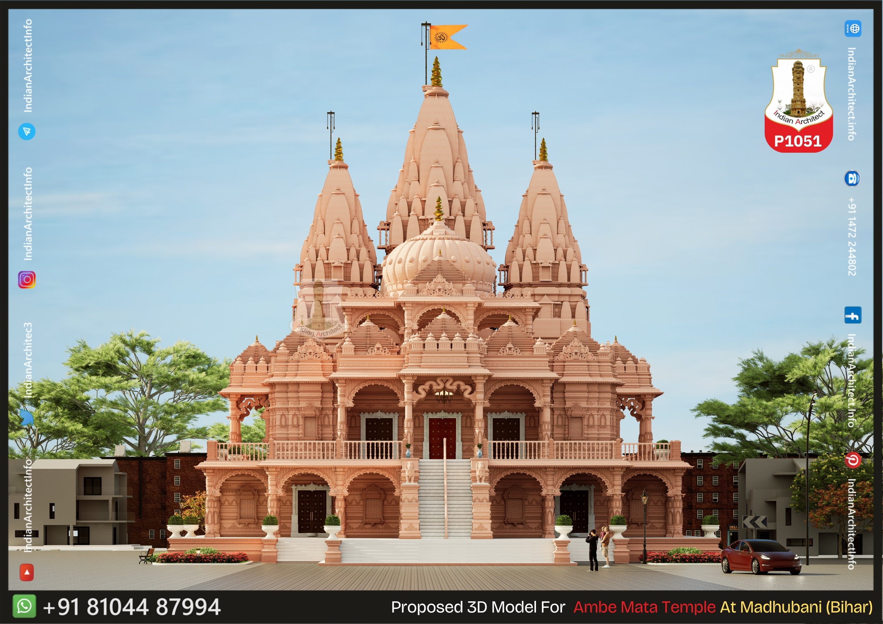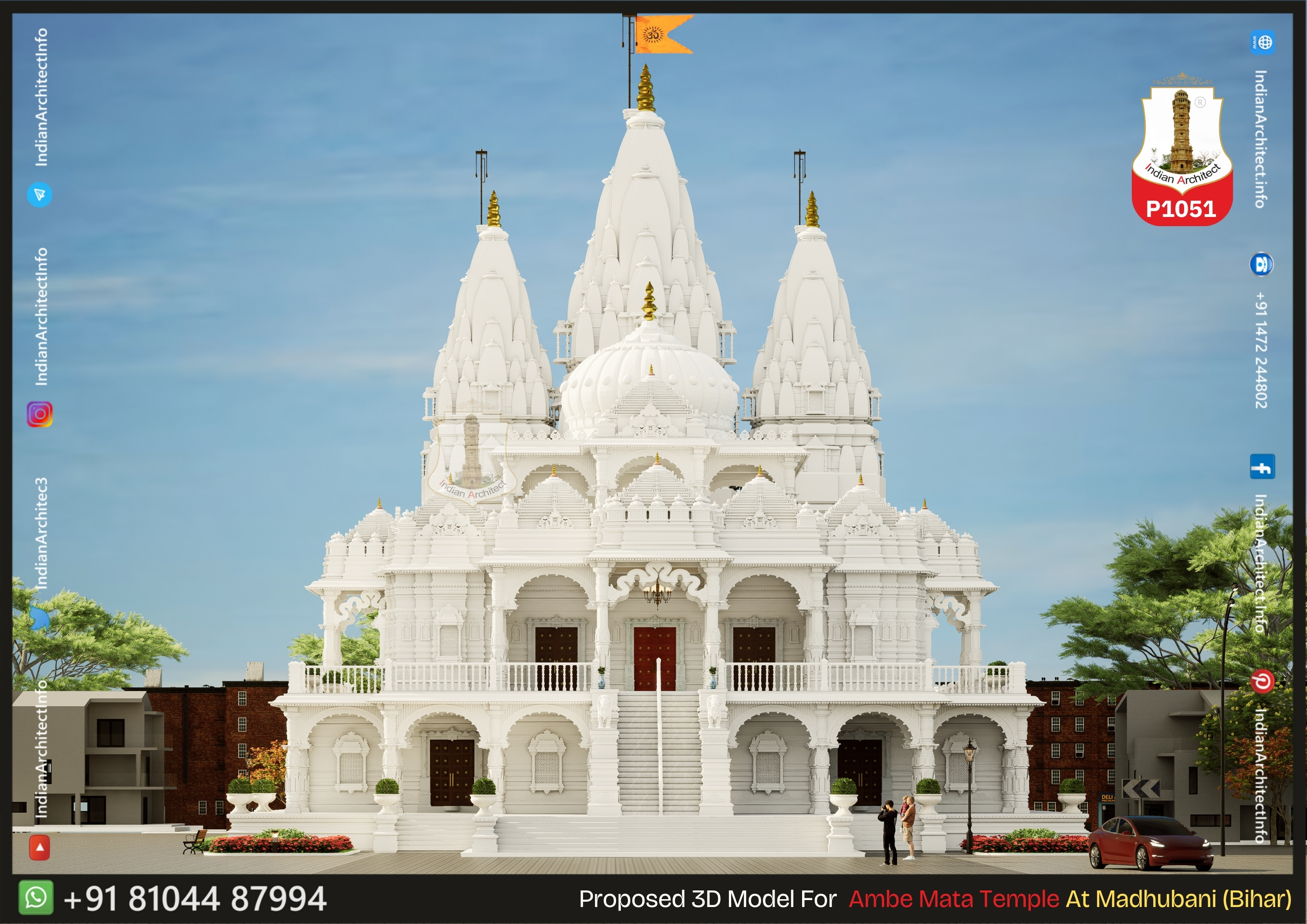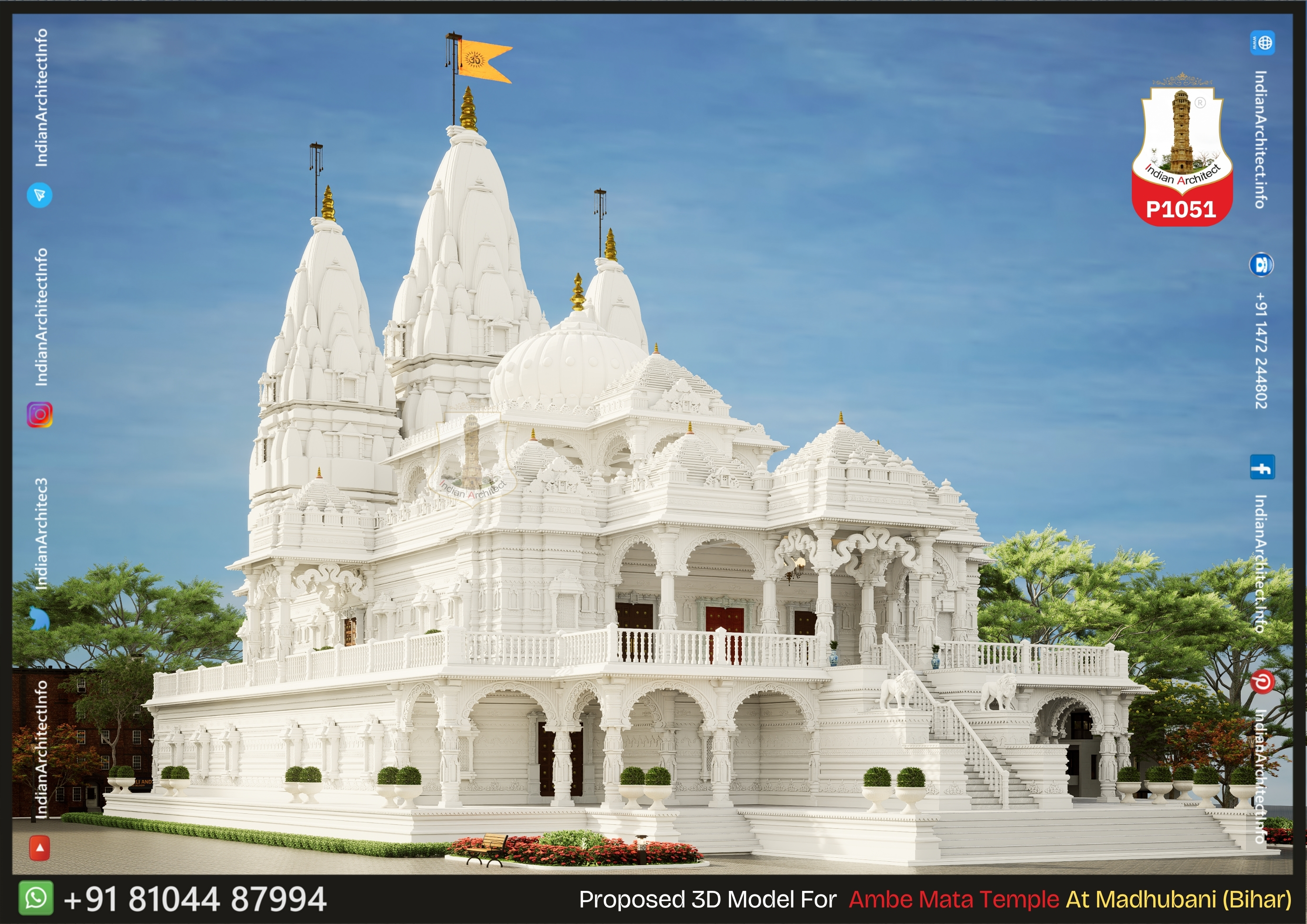 • Multi-Shikhar Design: The design features three prominent Shikhars (spires) with curvilinear profiles, representing the celestial mountains.