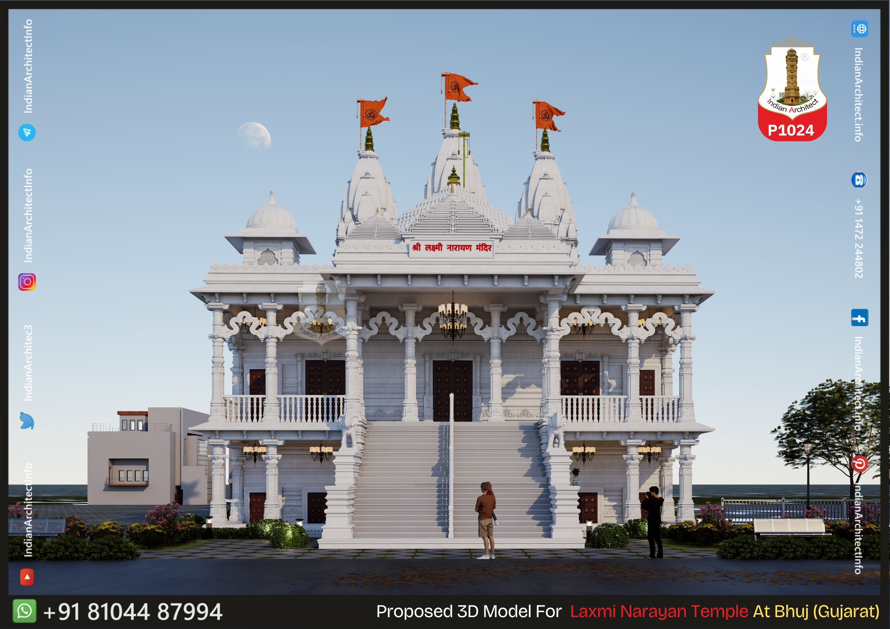 Inscribed Frieze: The name "Shri Laxmi Narayan Mandir" is elegantly inscribed on the lintel above the main entrance porch.